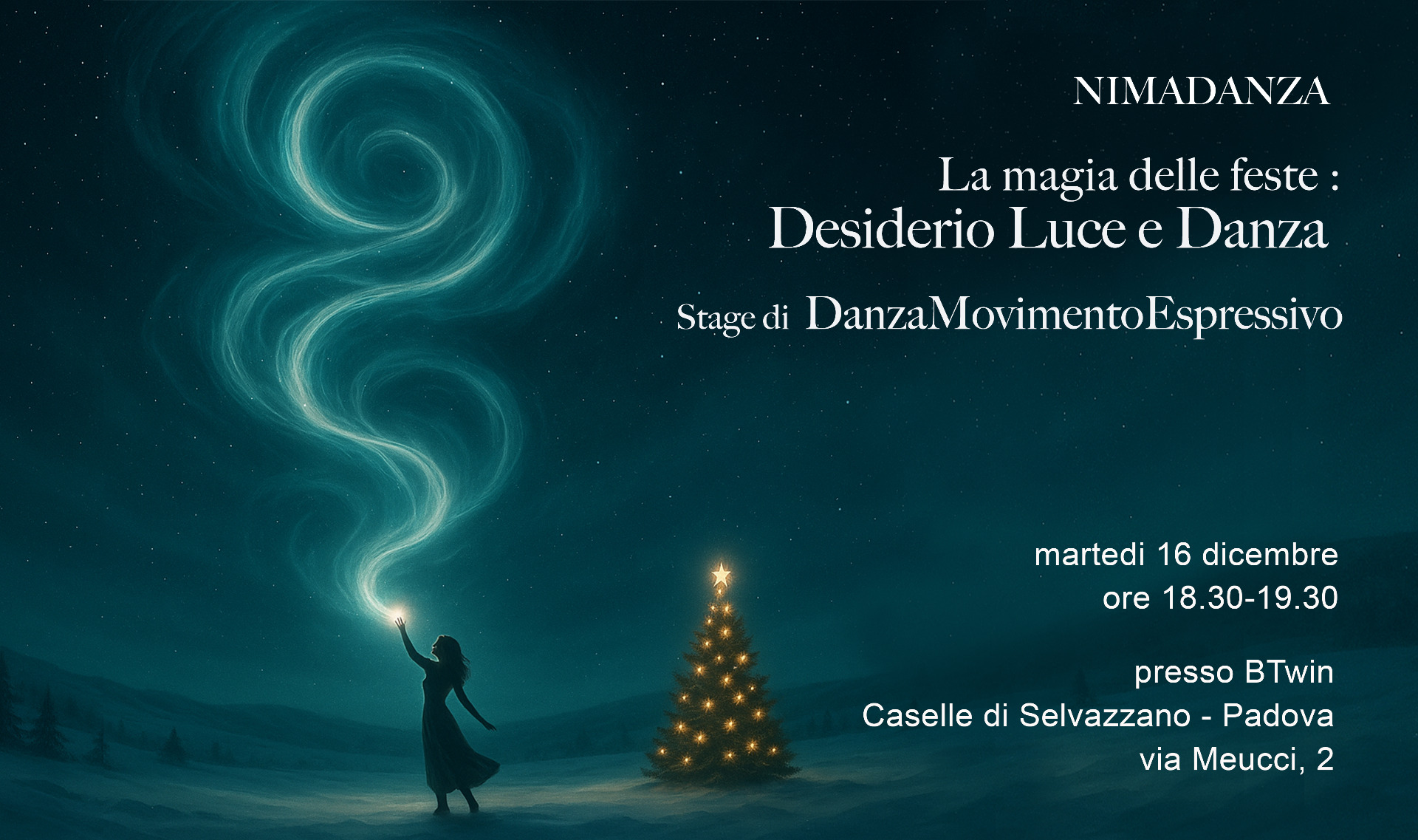 Un incontro di Danzamovimento Espressivo basato sul metodo Fux, che utilizza il corpo come strumento di espressione artistica e connessione profonda. Attraverso movimenti liberi e guidati, esploreremo la relazione tra luce, magia e desiderio, risvegliando la creatività e armonizzando corpo e mente in vista del Natale. Un'esperienza di benessere e consapevolezza attraverso il linguaggio della danza.